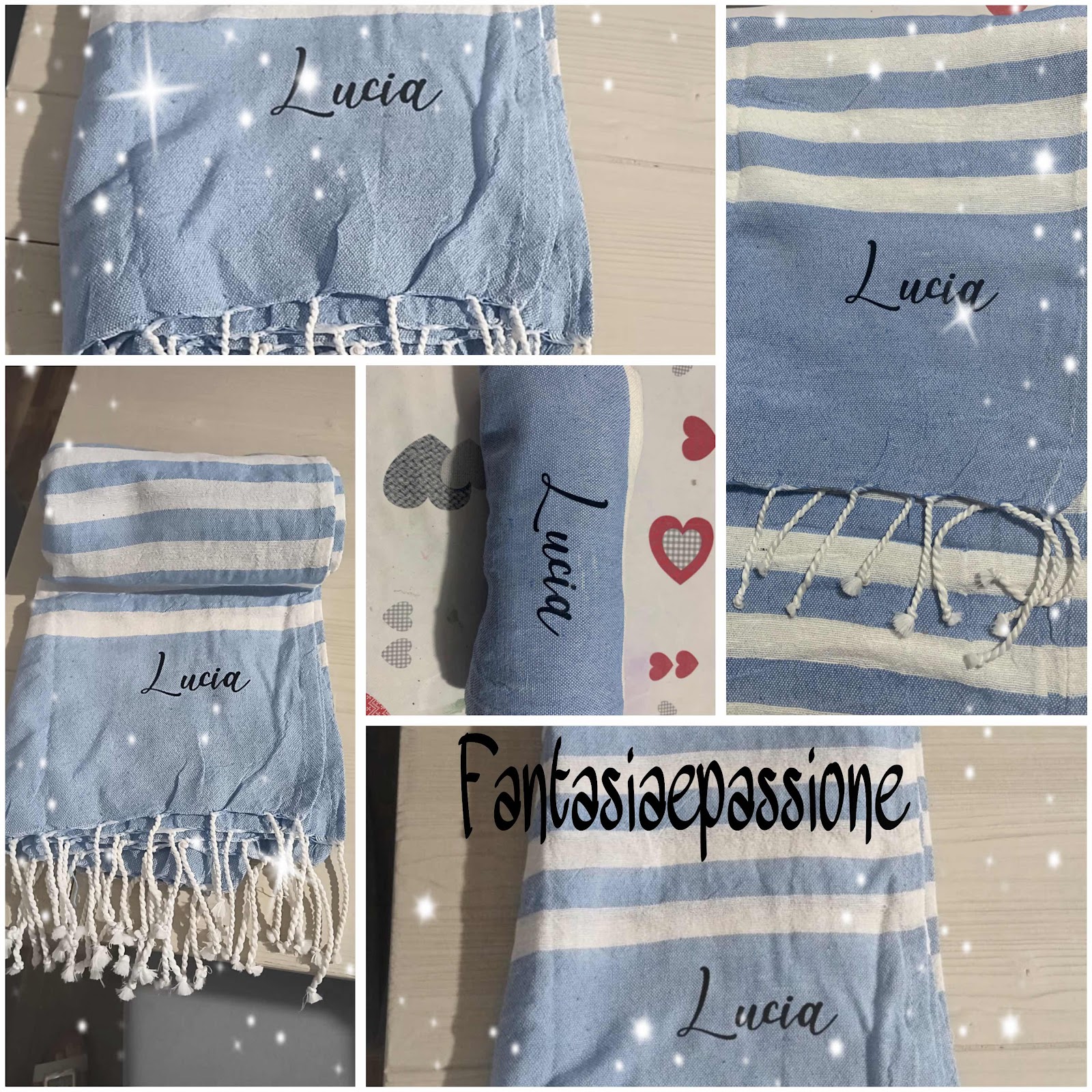 Ecco il telo mare personalizzato che ho preparato per una mia collega.